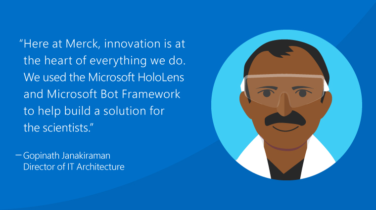 “Here at Merck, innovation is at the heart of everything we do. We used the Microsoft HoloLens and Microsoft Bot Framework to help build a solution for the scientists,” says Gopinath Janakiraman, Director of IT Architecture.