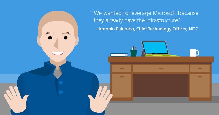 Creating peace of mind and opportunity“Migration to Exchange Online was easy,” Palumbo recalls. NDC employees found all their old emails in their new mailbox and had a one-time setup process clearly spelled out to keep migration simple. Since the transition, the NDC has adopted SharePoint and Skype for Business to drive collaboration and manage schedules, while the security and compliance features within Office 365 have helped it thwart potential data breaches and stay ahead of compliance regulations.