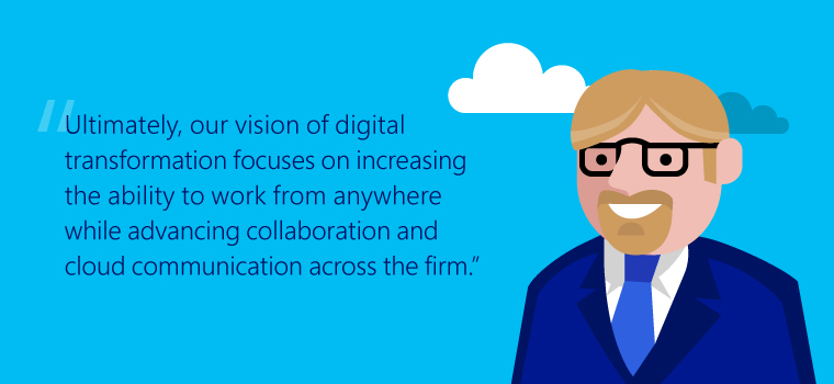 “Ultimately, our vision of digital transformation focuses on increasing the ability to work from anywhere while advancing collaboration and cloud communication across the firm,” says Pynch. “We wanted to build an overall platform, not just a bunch of solutions pieced together.”