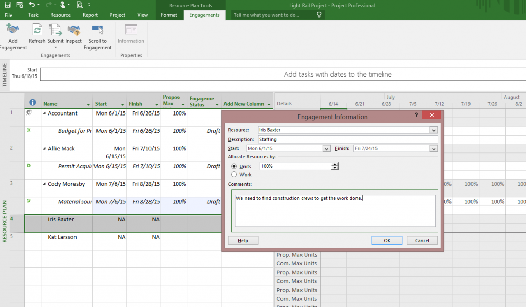 For project managers, securing resources to ensure your project is properly staffed has always been a challenge. With Project 2016, it’s now possible to systematically request a resource, and once approved, lock that resource to guarantee it’s available.