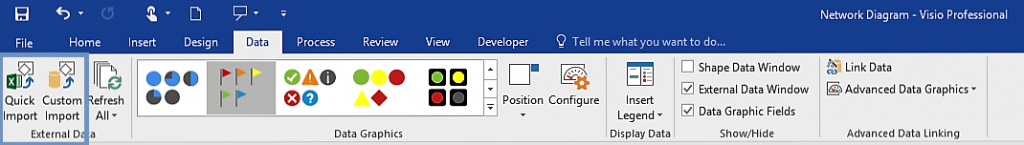 The Visio 2016 Quick Import capability now makes it easy for anyone to link data to real-world diagrams, plans and processes. With a single click, the new Visio can automatically identify the data source, import the data, link that data to shapes and apply data graphics. With one-step data linking, you can easily turn diagrams into dashboards and monitor progress or performance in real time.