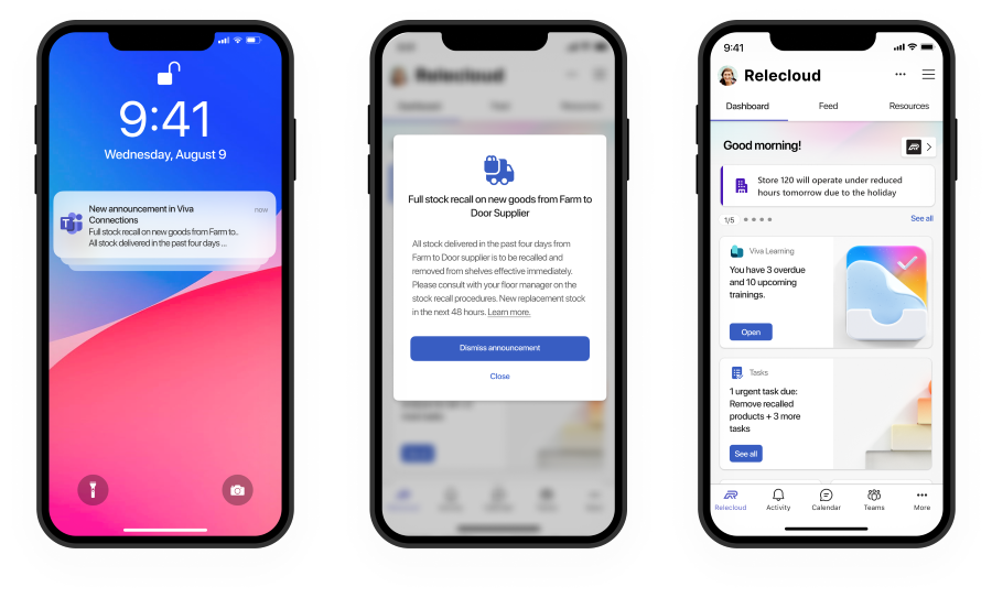 Announcements in Viva Connections lets managers target communications and create notifications for store associates within the home experience of Teams. This new feature makes it easier to target operational communications with timely updates, providing an easy way for store managers to create, publish, and deliver announcements out to frontline teams. Announcements are coming to tablet and mobile experiences in September 2023, and the ability to view announcements on desktop is planned for future releases.