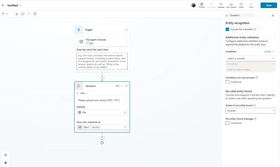Agents built in Copilot Studio can now accept files from users and pass them into downstream systems through agent flows, Microsoft Power Automate, or connectors. This opens the door to richer scenarios where file inputs are central to the process, such as document summarization, data extraction, or validation workflows. Makers can now handle these processes without leaving the Copilot Studio experience.