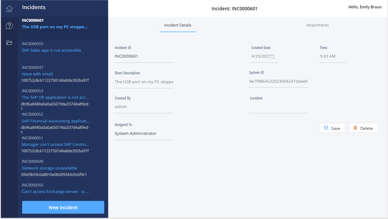 - Get Incident: Retrieves the specified incident record using the provided Id parameter