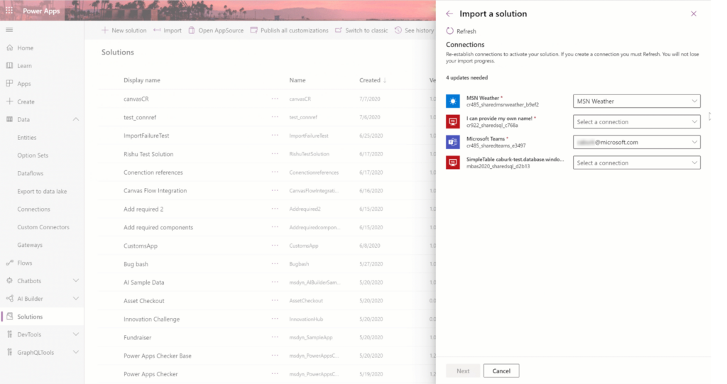 Today we’re excited to announce a broad set of new ALM capabilities for importing solutions. In addition to these modern new interfaces, now you can establish connections as well as set values for environment variables while importing solutions. We’re also excited to announce that environment variables are now generally available. Together, these features address some of the largest application lifecycle management problems facing the Power Platform.