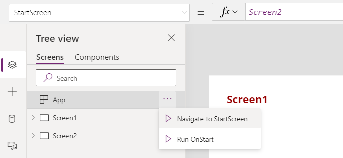- App.StartScreen is separated out from App.OnStart in the second case. They are independent and can be evaluated separately. We can show the first screen before App.OnStart is complete. This is huge. Today, if the App.OnStart contains a Navigate call, we can’t show the first screen until the entire App.OnStart has completed, blocking optimizations that would improve app load time.