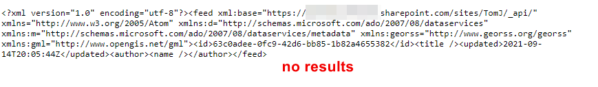 Here, you can see exactly the filter that is going to be applied when we query SharePoint: ContactEmail eq 'Andrea.R@contoso.com'. All it would take is a quick glance at SharePoint to confirm that there aren’t any items that will fulfill this condition. With a little knowledge of the SharePoint REST API, I can even turn this into an API query I can run in my browser: