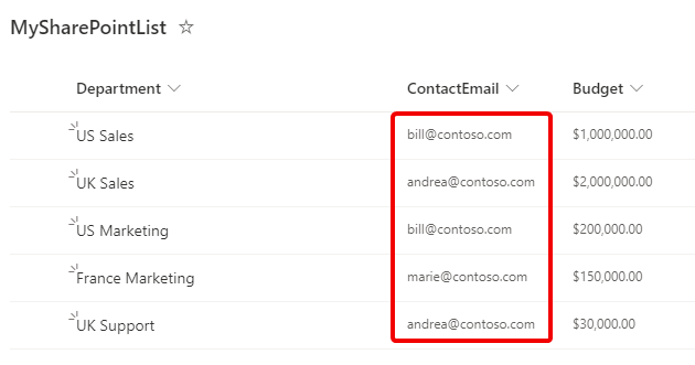 • The column on that list “ContactEmail”