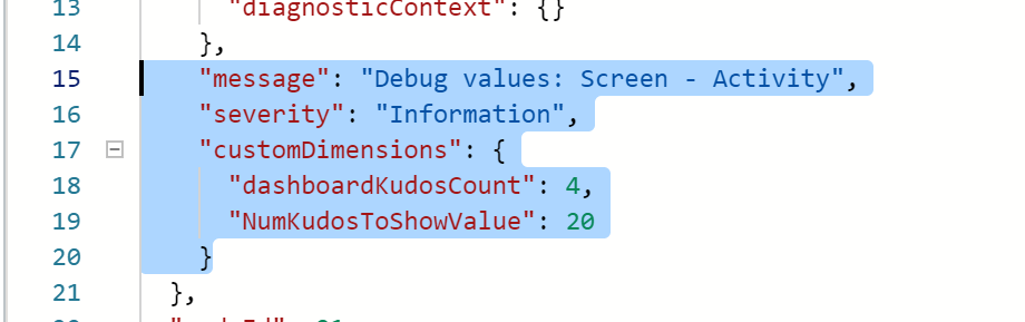 Trace(“Debug values: Screen – ” & screenName, TraceSeverity.Information, {dashboardKudosCount: CountRows(dashboardKudos), NumKudosToShowValue:NumKudosToShow});