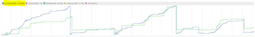 2. Do profile Performance from a browser and check what scenarios hits the ceiling of JS Heap.