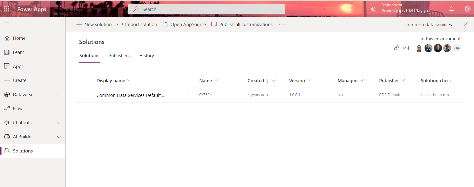 By default, this feature saves all canvas apps to the default solution named Common Data Services (CDS) Default Solution published by Microsoft Dataverse Default Publisher (see below). As a best practice, we recommend that makers create their canvas apps in custom solutions or move canvas apps created from the default solution to a custom solution to facilitate the management of solutions and establish a common standard across all environments.
