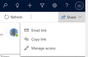 Links to records can be shared easily via the “Share” button in the top right corner of the command bar: