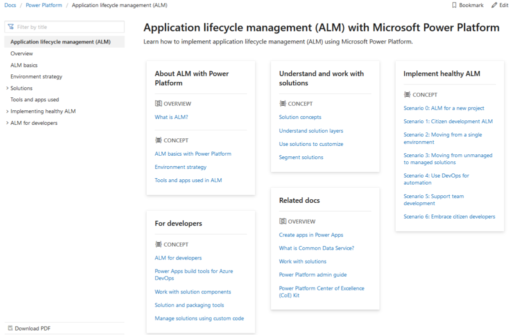 We have aimed to create a guide that covers everything from simply explaining ALM for beginners, to how you can move from an environment-centric development to a model where apps and automations are backed by source control and Continuous Deployment and Continuous Integration (CI/CD) implemented using Azure DevOps