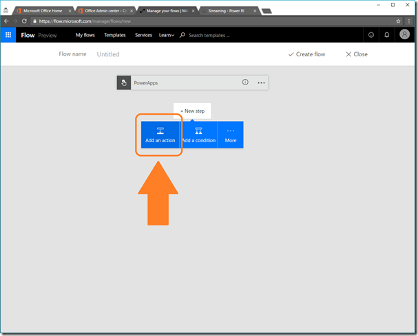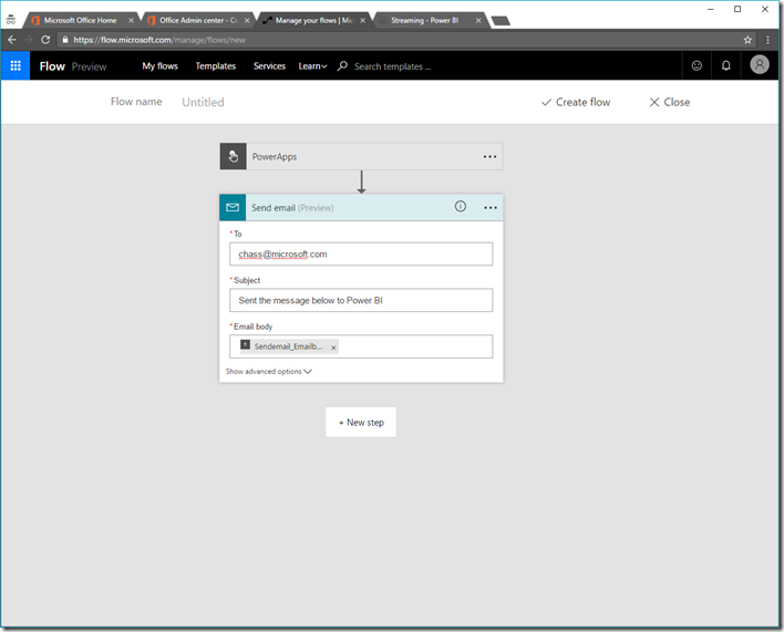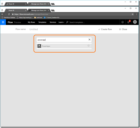 If you aren’t able to make the webinar here are the steps for getting Power Apps /Power BI integration working with Microsoft Flow.