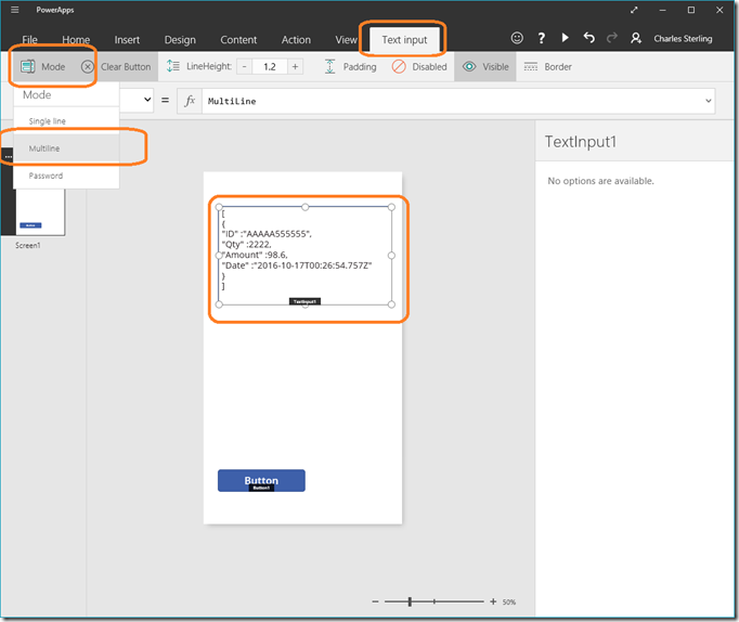We are going to use the Textbox to hold the JSON and the Button to invoke the Flow.