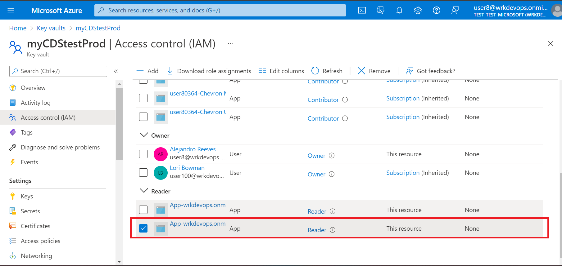 Grant the SPN for the CI/Cd Pipeline access to the target environment Key Vault