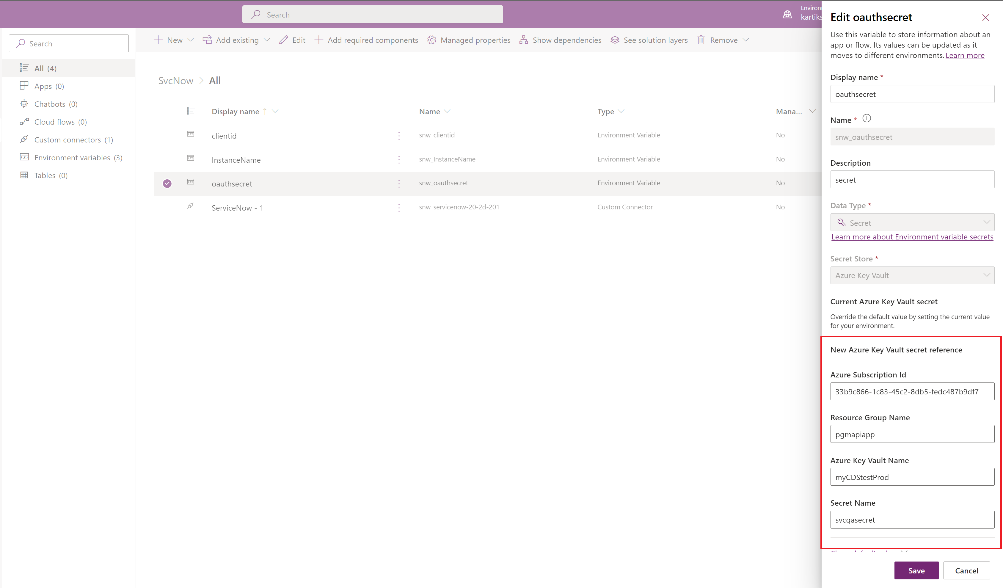 We began the new year, announcing the preview of a capability in Dataverse, which allows environment variables in Power Platform to reference secrets stored in Azure Key Vault. Since the preview, we have had a lot of users asking on how this preview would work with their ALM pipelines. This document highlights a general flow on to make it work. The ALM pipeline being executed is being run under a service principal (SPN).