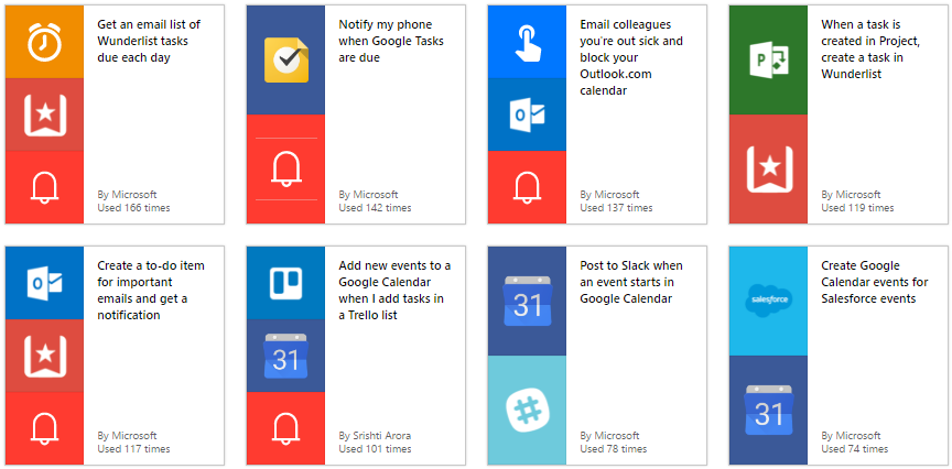 Increase reach, discoverability and usage of your service by publishing pre-defined task specific templates that integrate your app with our growing family of connectors.