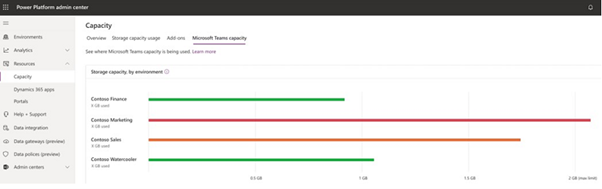 Admins can monitor capacity usage for Dataverse for Teams environments using dedicated capacity views in PPAC.