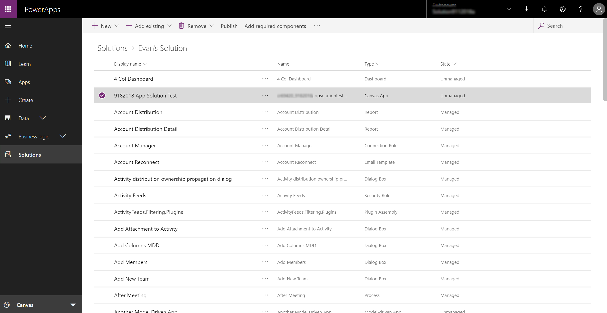 Improved ALM with canvas apps in solutions. Canvas apps and flows can now be included in the same solution infrastructure that powers the full Dynamics 365 for Customer Engagement platform. This brings great improvements to the limited import-export functionality previously offered for canvas apps, and means that all key platform assets can now be moved together across environments as well as published to Microsoft AppSource on a single infrastructure.