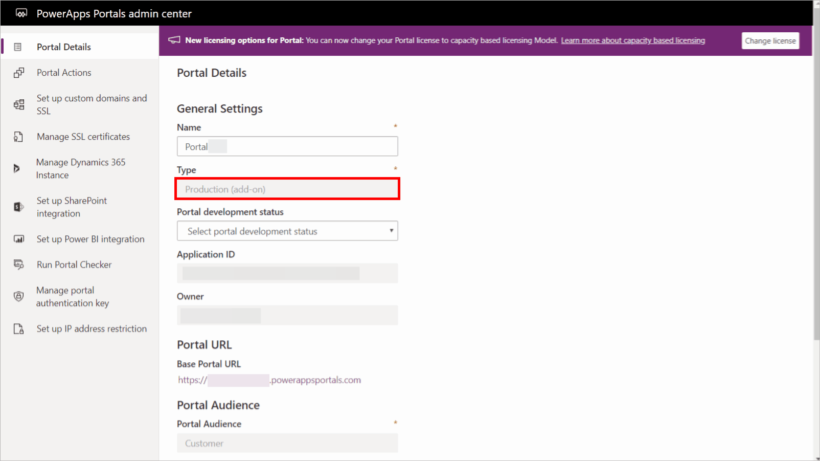 After your portal is successfully converted to the new capacity-based licensing model, the portal type will change to “Production” and the “add-on” suffix will be removed.