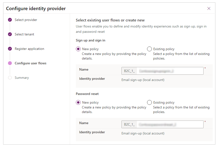 • Configure Sign-up & sign-in and Password reset user flows (new or existing)