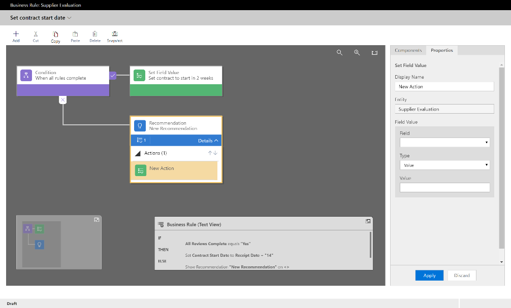 Business rules – Ensuring accurate data, regardless of the app that created or edit it is important to maintain data consistency, and ensure apps and analytics continue to operate as expected. Business Rules provide a nice graphical UI for defining these rules and actions that will be executed sychronously when a record is created/updated.
