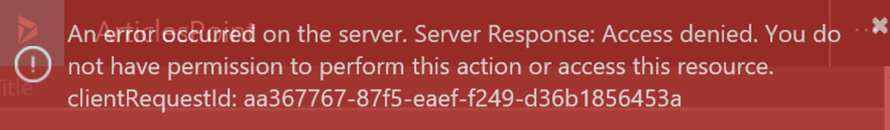 - In addition to sharing apps with others, make sure to give them access to any data required for the app to run. They may, or may not see, an error message like this one depending on the relevant data source(s):