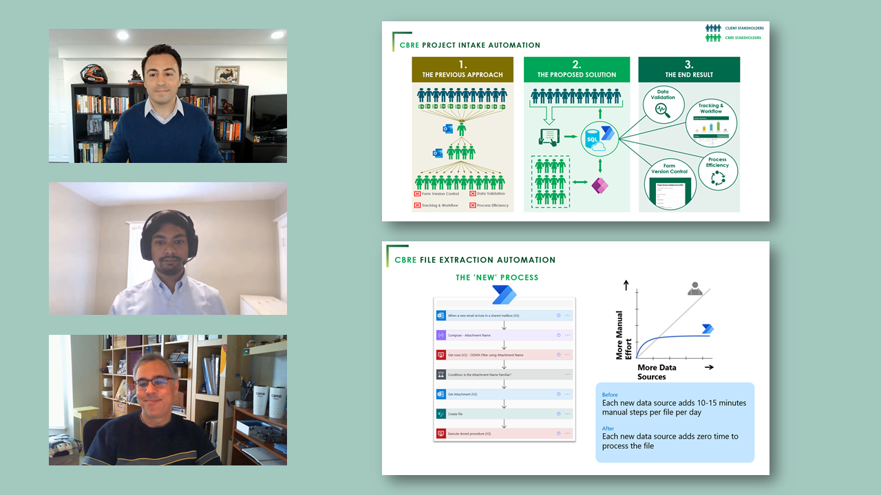 CBRE is a global real-estate and outsourcing company spanning over 100 countries. Having granted access to Power Automate across the organization, business analysts within their business units could directly contribute to solutions. They no longer needed to rely on a centralized analytics team because solutions were scoped and relevant to the individual teams.