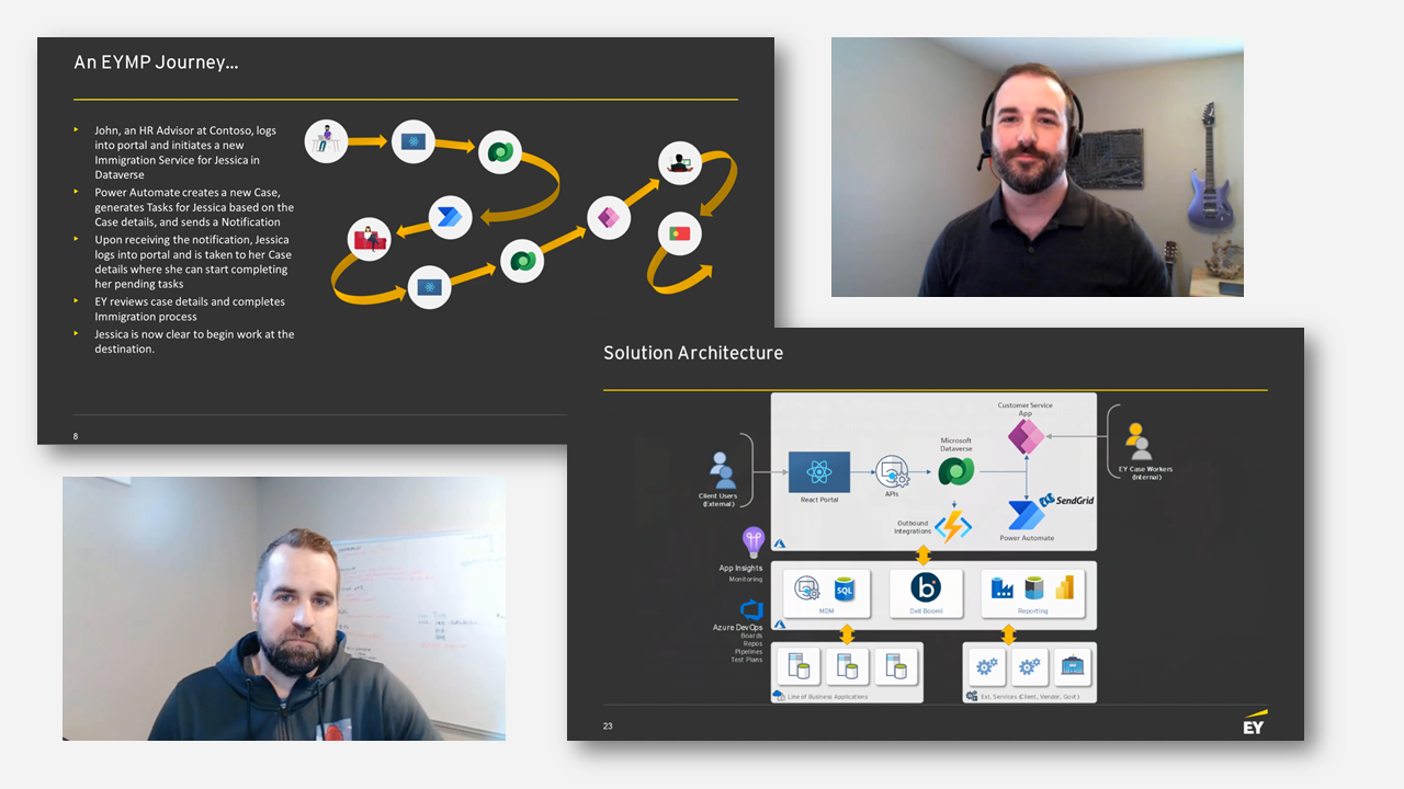 Moving employees from one part of the globe to another is a complex process involving immigration, compensation, case management, and more. The EY Mobility Pathway (EYMP/IML) integrated solution brings together mobility technologies and services into a single, end-to-end solution, utilizing the Power Platform and a custom-built portal, that delivers value to clients through reducing cost associated with employee mobility, while driving automation and consistent process execution for users across the mobile talent lifecycle. In this session, Doug Fighter and Michael Maloney from EY’s Technology Consulting Division walk through why they chose Power Platform and the solution architecture behind the solution.