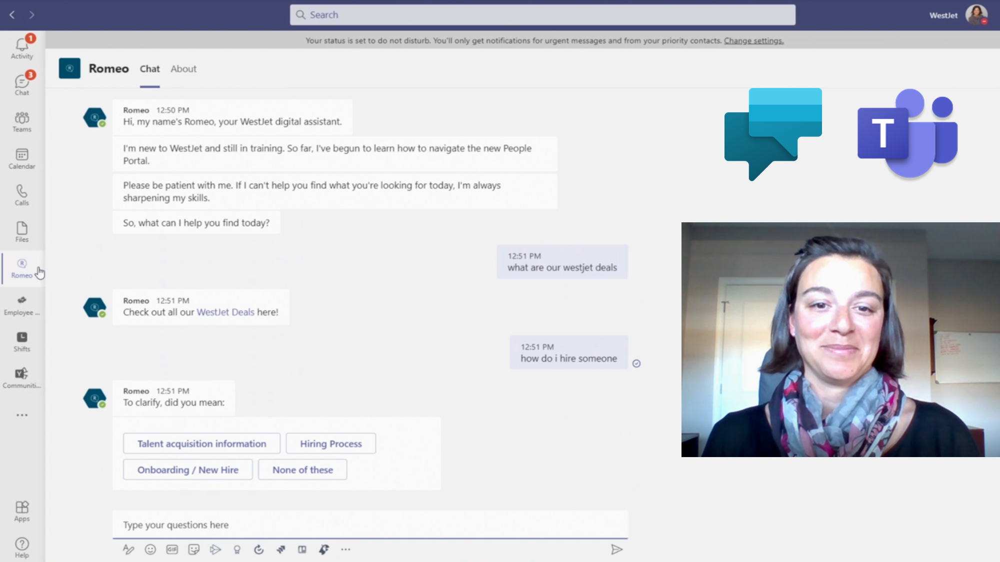 Lisa Eyamie, Senior Manager for End User Experiences, partnered with Microsoft Partner Avanade to build a fun and friendly Power Virtual Agents chatbot called “Romeo”. Romeo is integrated into the Microsoft Teams experience and used by WestJet employees as a widely used digital knowledge management chatbot. Lisa and team decided to ‘go big’ – making it available to all employees across a wide variety of ‘People and Culture’ topics – from benefits information to learning and development to hiring to latest deals, and a lot more. The content and topics covered by the bot were created by business users who are not software developers. The chatbot was built in less than a month and has helped further a culture of self-sufficiency and innovation at WestJet Airlines.
