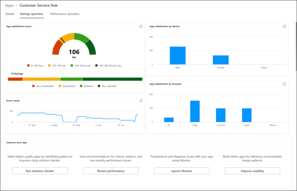 We aim for Power Apps to be synonymous with highest quality apps built at enterprise scale. As a further step to this goal, we are enabling makers and organization administrators to view the app ratings and comments provided by app users. The feature is currently available only for model-driven apps as part of public preview.