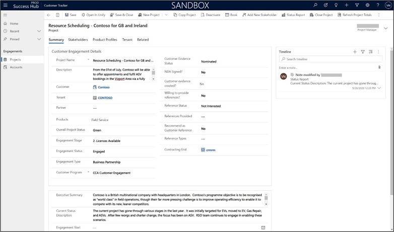 Our new Customer Tracker app helped the team track all customer interactions and engagements (projects) in one place. No more Excel spreadsheets and random tools. All team members track all key attributes (such as overall status, executive summary, status, start and end dates) in the same format, which helps us track and report status.