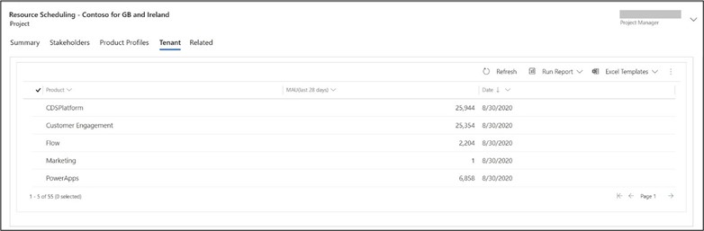 Figure 4: View usage of the product based on the tenant linked to engagement