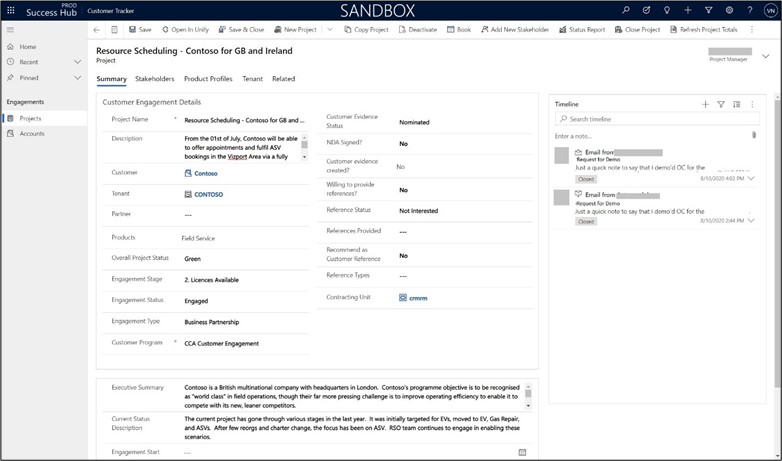 Dynamics 365 enables teams to capture and manage all sales and customer service-related interactions for their prospects and customers.  Product managers at Microsoft interact with customers too, for instance to get feedback on new features, run early access programs, and give demos of upcoming features. Using the extensibility capabilities of the Common Data Service in Power Platform, we made a Power Apps app to record customer interactions. This enables our product management organization to manage and search engagements to further improve our product portfolio.