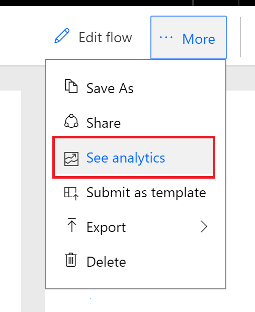 - Option 3: On a flow’s main page, click on the More dropdown and then click on See analytics.