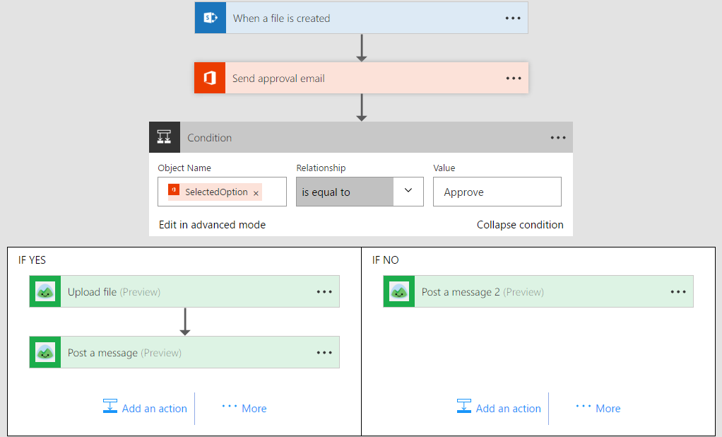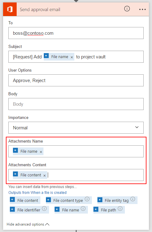 The file uploaded to the SharePoint folder is attached to the approval email so that the project manager can inspect and approve the file right from their email inbox.