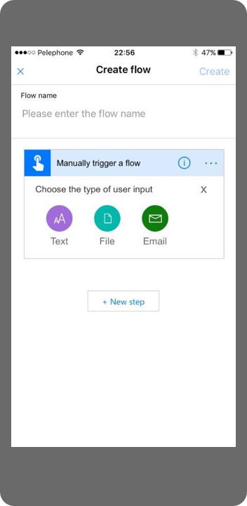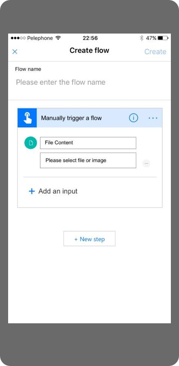To define a file input for a button trigger, just start by creating a flow from scratch, and select the ‘Flow button for mobile trigger’.