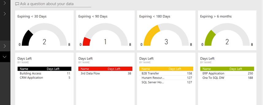 Microsoft Power BI is one of the most popular and feature-rich data visualization tools available. It’s also part of the same business applications, platform, and intelligence organization as Microsoft Flow, which means integrating the two is easy and creates powerful possibilities. For example, let’s imagine that you wanted to set up a workflow automation to alert you when a technical certificate is about to expire. You have a table with four columns for the certificate name, expiration date, the number of days left until expiry, and the certification status.