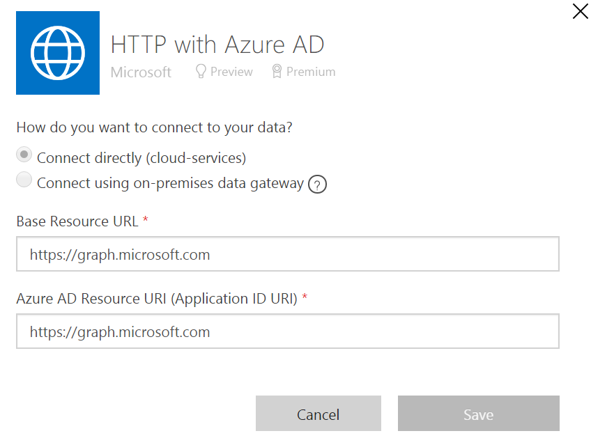 There is a new connector – HTTP with Azure AD – that enables you to get data from authenticated endpoints, with user-based Azure AD or Windows authentication. Previously, you could use Service Principal authentication for HTTP actions, but this did not support user-based auth. Now, you can create a connection that will enable any user to connect to an HTTP endpoint.