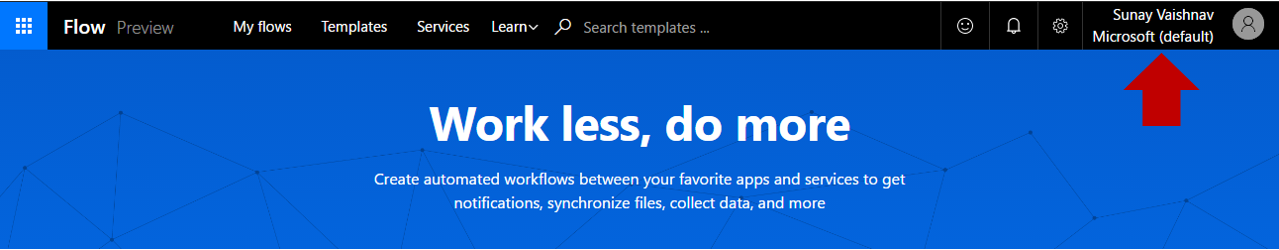 With the introduction of environments, you will now see a new experience when you come to https://flow.microsoft.com The flows, connections, and other items that are visible in the site will now be filtered based on the current environment that is selected. Your current environment is specified in the environment picker in the top bar on the right.