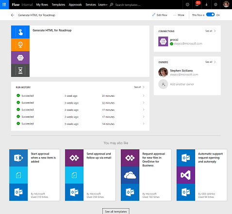 Starting this week, when you go to your My flows list and select a flow you’ll see a new flow details page (instead of the flow designer itself):