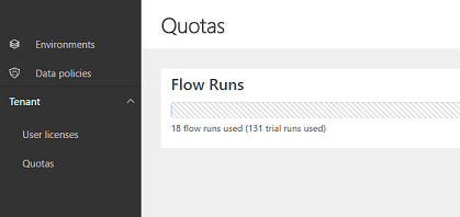 Inside of organizations, the number of flow runs you have is a quota that’s shared across all users in the company (see the Microsoft Flow Pricing page). Now, tenant administrators can see how many flow runs have been used by members of their org in the Microsoft Flow Admin Center.