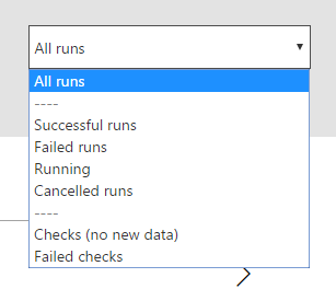 Now, you can also filter to see just the instances that are currently running, or those runs that are cancelled. It is now possible to filter specifically to see failed checks (meaning the trigger did not fire because of an error), or, to see failed runs (meaning one or more of the actions did not execute successfully).