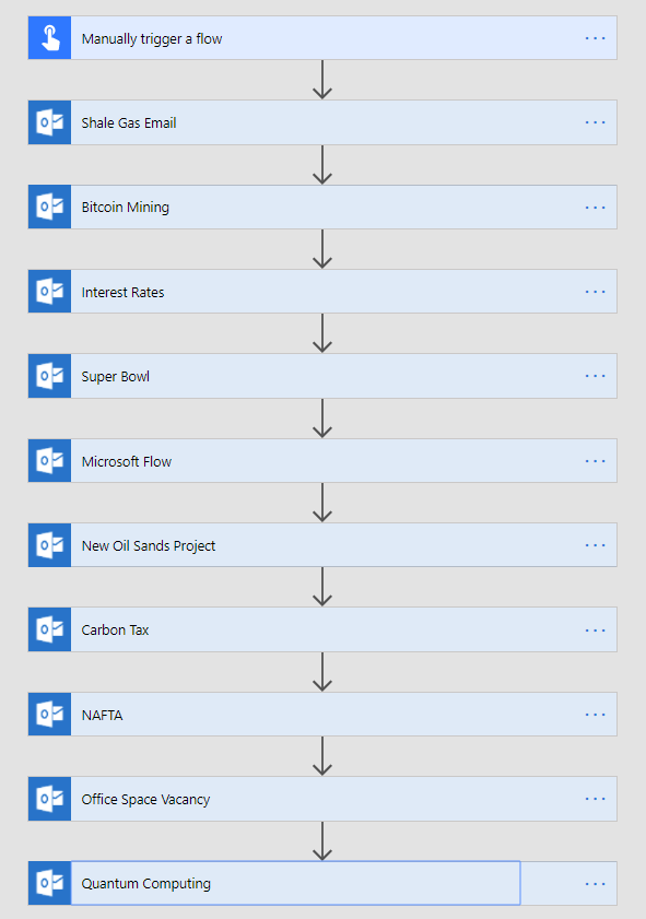 To test this flow, I did what any flow user would do…automate it using Microsoft Flow! By clicking a button, I can send 10 different emails that represent the types of emails that a person expects to receive.