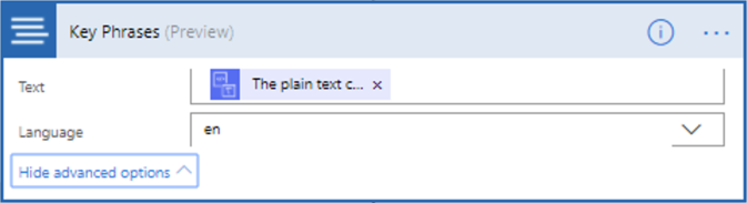 - We are now ready to send our cleansed email body to the Key Phrases API. Optionally, we can also provide a targeted Language.