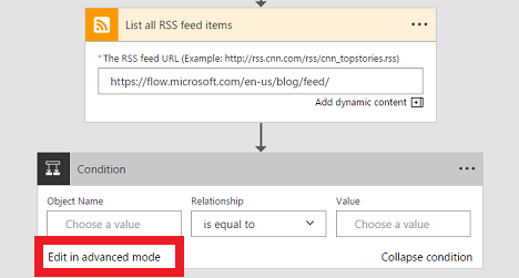 Next, you will need to Add a Condition to check to see if any of those posts happened in the last 10 days. In order to build that you will need to select Edit in advanced mode.