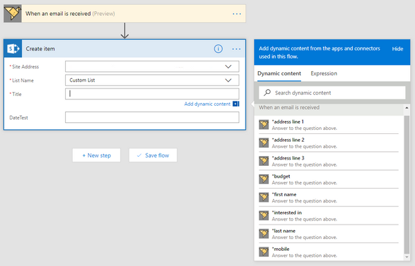 In the steps outline below, we will show you how to select the exact data you need from your email body and add it straight into a SharePoint List. However you could take your extracted email data and add it into any one of the 3rd part connectors supported by Microsoft Flow!