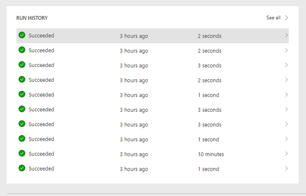 If you do see the “Flow data” tab, this means that the data has been sent successfully to Flow. If you load up your Flow dashboard, you should see some successful runs of your new flow: