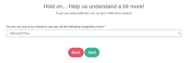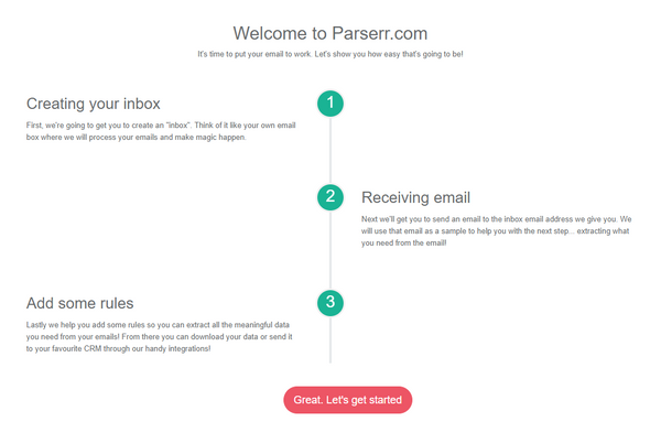 2. Click on the confirmation link in the email and login with the details you provided previously. Once logged in, you should be presented with the setup screen. Click the “Great. Lets get started” button
